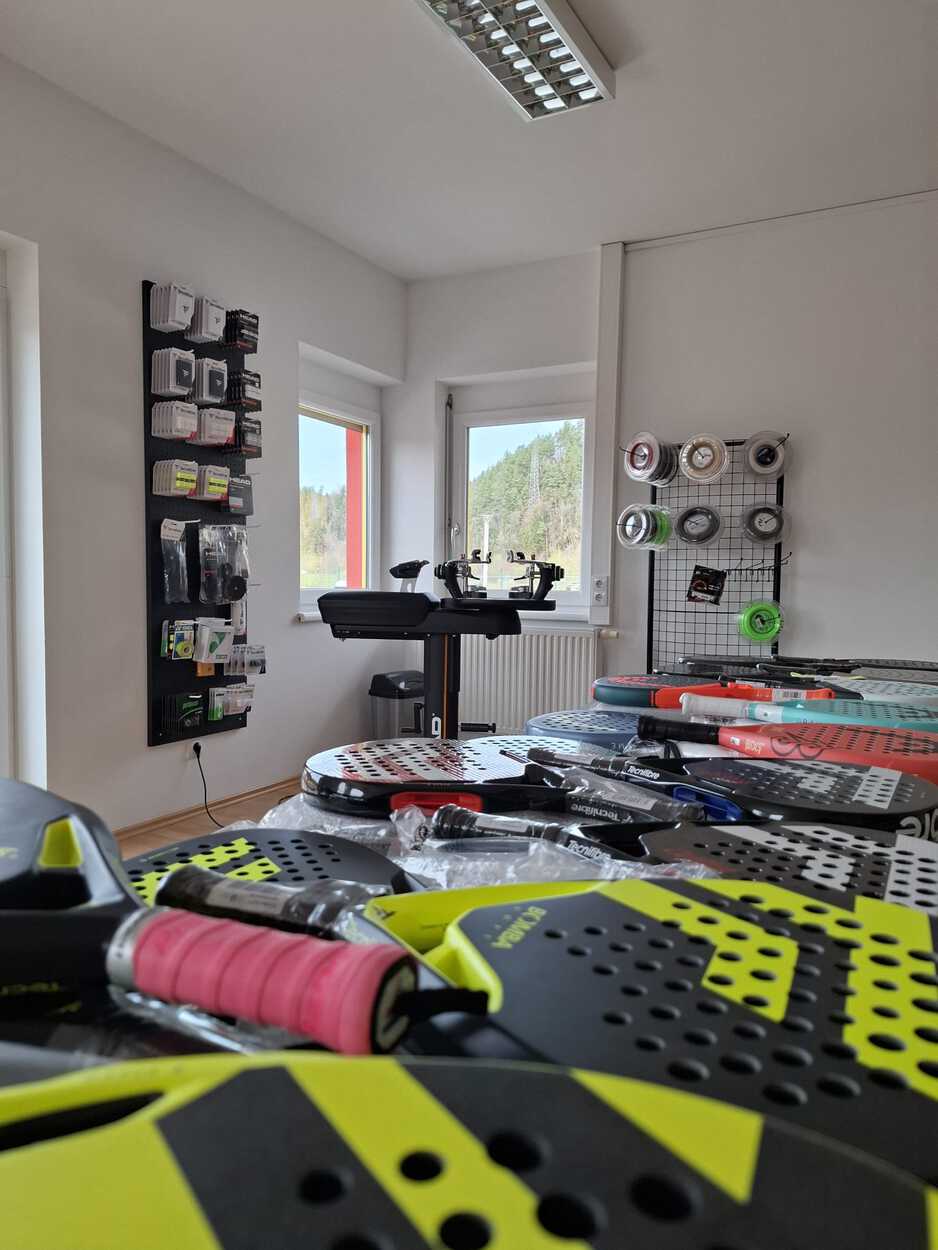 Zusätzlich findest du bei uns einen kleinen Shop mit ausgewähltem Padel- und Tennis-Equipment der Marken Head und Tecnifibre. Auch dein Tennisschläger ist bei uns in besten Händen, wir bieten professionellen Besaitungsservice direkt vor Ort.
